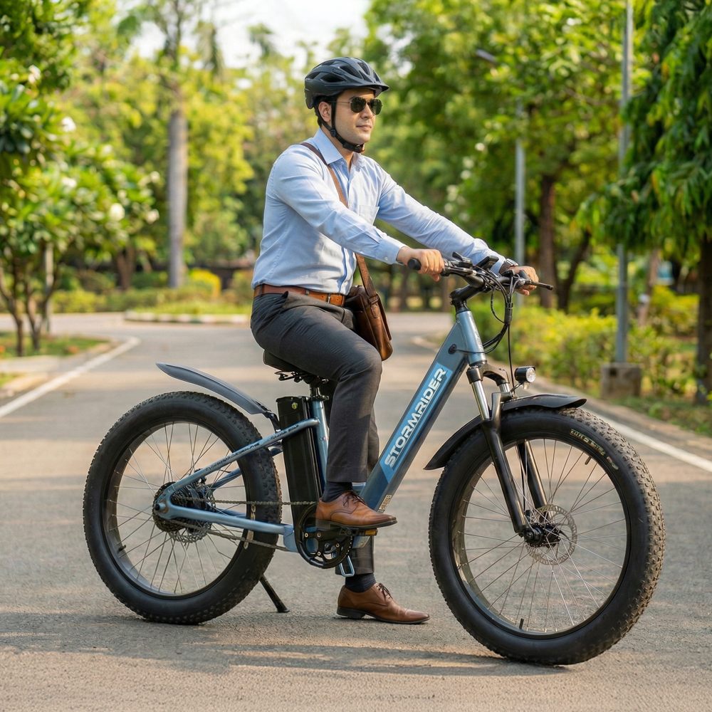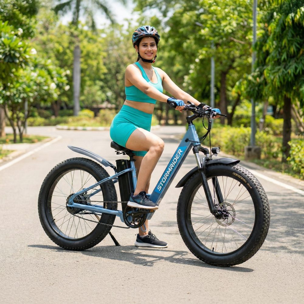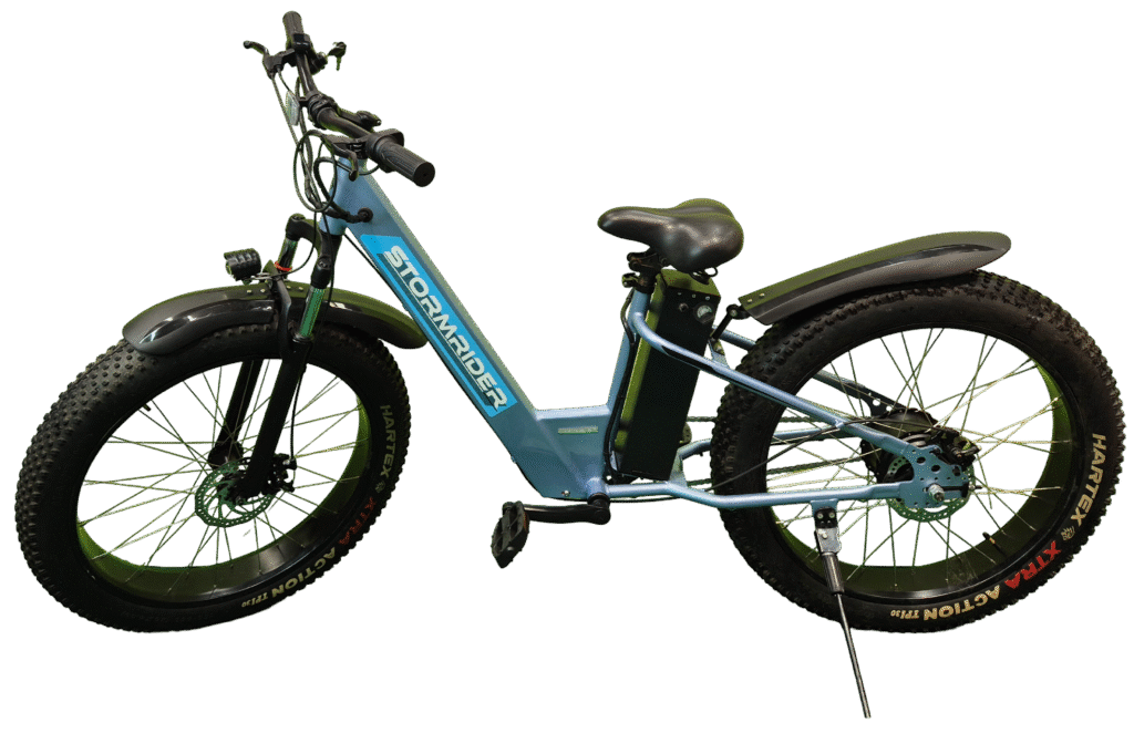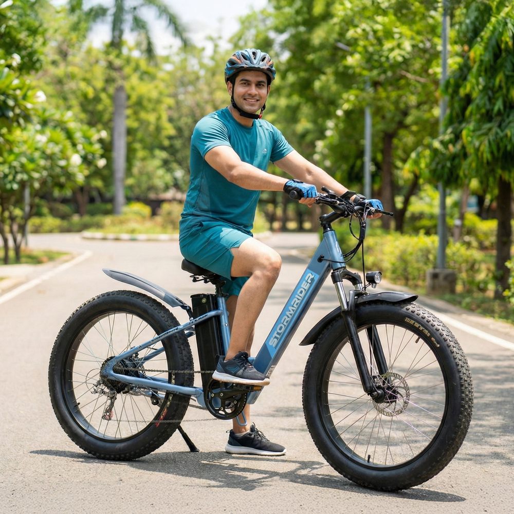 The Nexzu Stormrider eCycle is a rugged and powerful electric fat bike built for all-terrain adventures and daily commutes alike. Equipped with a high-performance 350 W waterproof powertrain kit and a long-lasting 36 V 13 Ah lithium-ion battery, it delivers superior torque and extended range in both pedal-assist and throttle modes. Its massive 26×4″ fat tyres provide exceptional grip and stability on sand, gravel, and rough roads, while dual mechanical disc brakes ensure reliable stopping power in all conditions. With a robust frame, all-weather electronics, and a sleek, aggressive design, the Stormrider is the perfect choice for riders seeking performance, durability, and style in one electric ride.