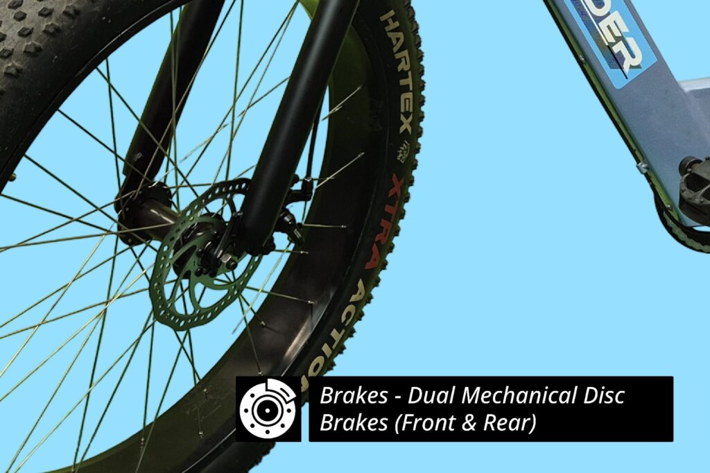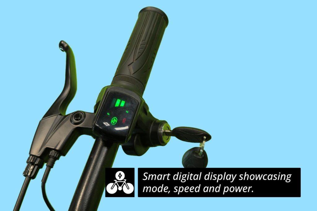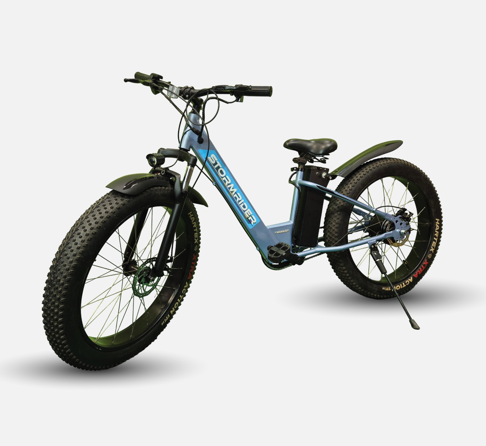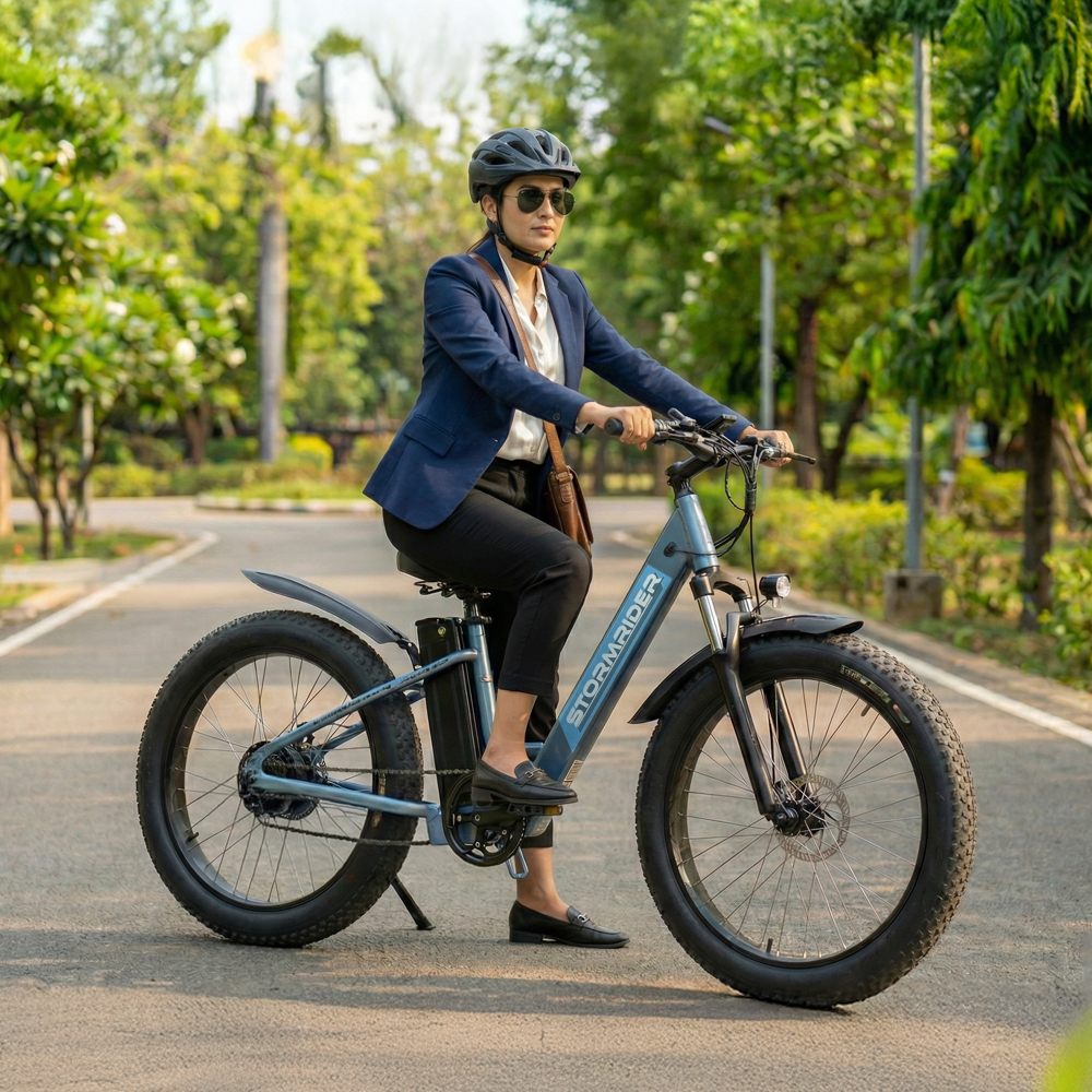 The Nexzu Stormrider eCycle is a rugged and powerful electric fat bike built for all-terrain adventures and daily commutes alike. Equipped with a high-performance 350 W waterproof powertrain kit and a long-lasting 36 V 13 Ah lithium-ion battery, it delivers superior torque and extended range in both pedal-assist and throttle modes. Its massive 26×4″ fat tyres provide exceptional grip and stability on sand, gravel, and rough roads, while dual mechanical disc brakes ensure reliable stopping power in all conditions. With a robust frame, all-weather electronics, and a sleek, aggressive design, the Stormrider is the perfect choice for riders seeking performance, durability, and style in one electric ride.